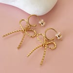 24k gold plated brass half hoops with a 18k gold plated brass bow charm. Size of hoops 11.5mm and charm 31x22mm. Comes in a cute gift bag.