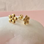 Brass 18k gold plated flower studs. 10x10mm. Comes in a cute gift bag.