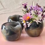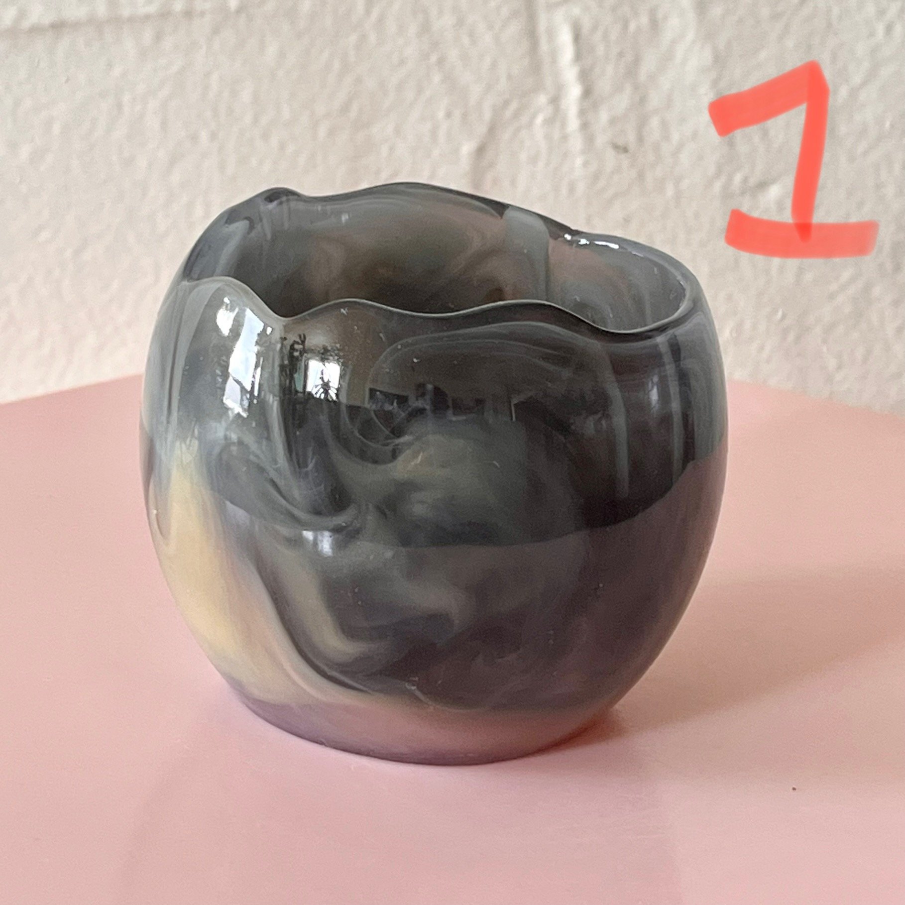 Hand poured bio-resin bowl made in New Zealand. The bowl measures approx 7x7cm. Each is one of a kind - each with its own individual quirks! This may include small air bubbles and other marks which are the result of these being hand poured. Can be wiped with a soft cloth and washed in soapy water but don't soak in hot water or place near direct heat.
