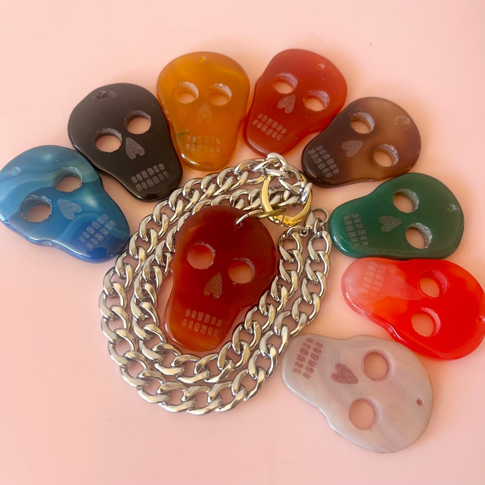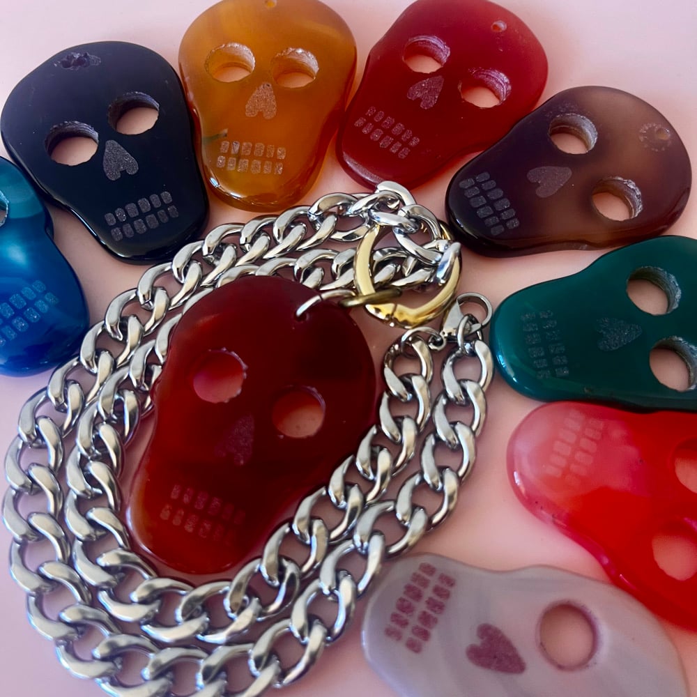XL Agate Skull Necklace on Chunky Chain